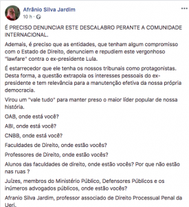 Retirado do Facebook de Afranio Silva Jardim, professor associado de Direito Processual Penal da Uerj.