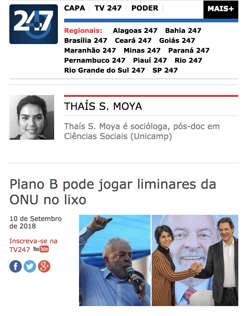 Portanto, o Plano B assume o ônus das instâncias internacionais alegarem que o próprio PT legitimou a eleição quando aceitou participar dela com outro candidato, inclusive, afrontando as liminares da ONU, que determinou que o candidato deveria ser Lula e não outra pessoa.