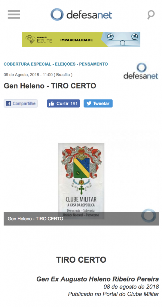 Notem que “Lula” e/ ou “Haddad” SEQUER entram nas considerações do General Heleno, que fala das “4 candidaturas com chance de ganhar”: “Bolsonaro, Alckmin, Ciro e Marina” (!)