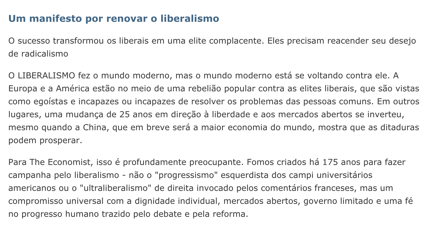 Mas saiamos da filial, a Folha, e voltemos à matriz, a Economist.