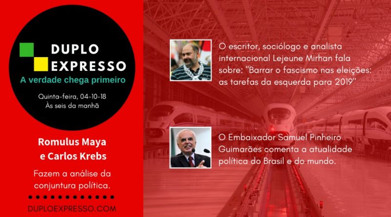 Para assistir, curtir as páginas e compartilhar, temos no Programa Duplo Expresso desta quinta-feira, 04/10, os seguintes destaques: